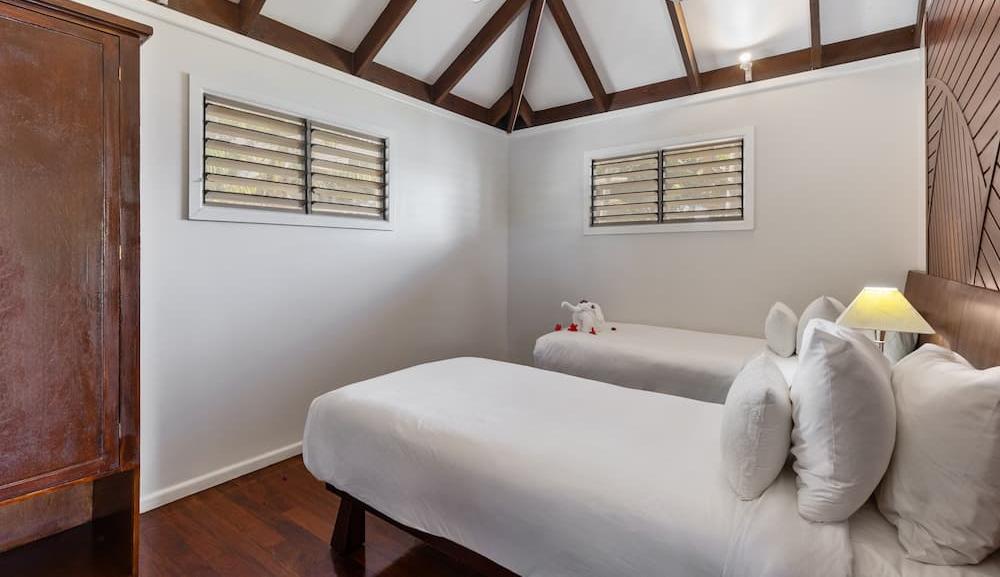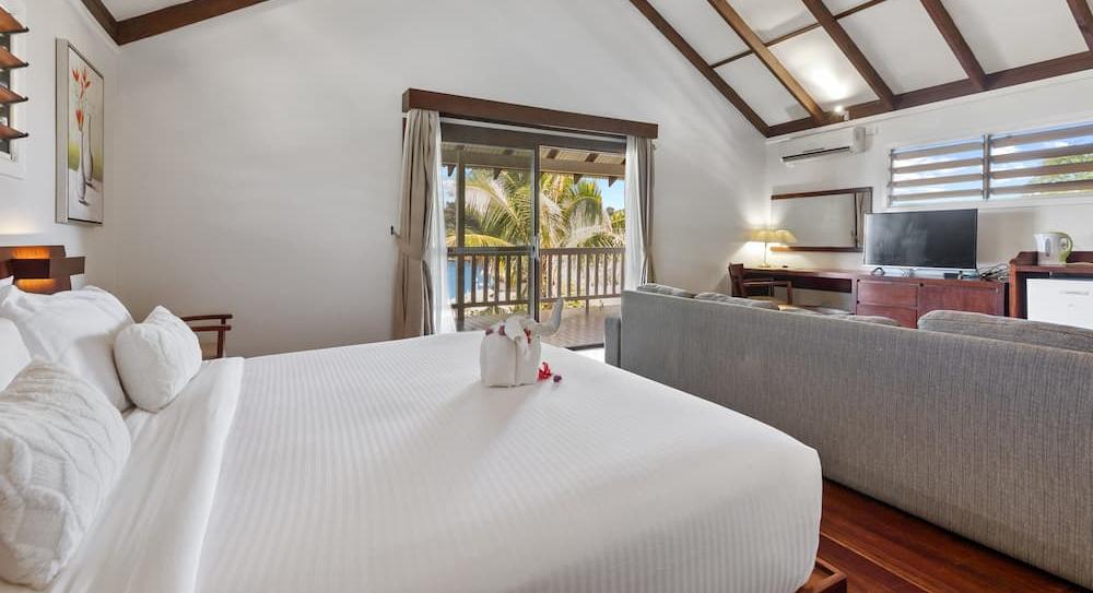 These large and luxurious farés are designed for travelling families with children with up to 5 guests. Situated at the front of the island for breathtaking views of Port Vila harbour from a large sweeping balcony, guests can enjoy the king sized bedding in a large sitting area as well as a separate bedroom for the children which allows guests to relax in private without disturbing sleeping children.